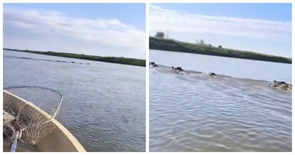 Житель Астраханской области поделился в соцсетях необычными кадрами. Мужчина запечатлел кабанов, переплывающих водоем.