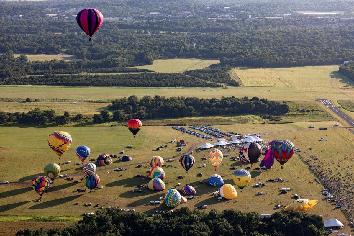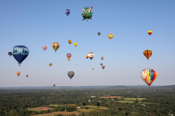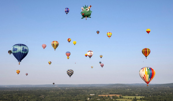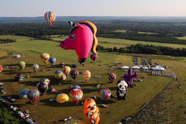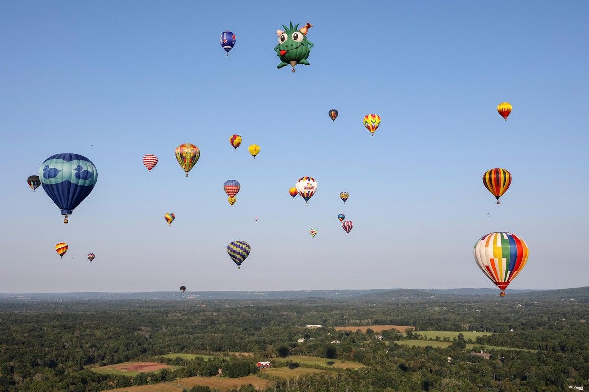 В минувшие выходные в Ридингтоне, штат Нью-Джерси, прошел фестиваль воздушных шаров (Festival of Ballooning in Readington). Мероприятие проходит уже в 38-й раз подряд, только в прошлом году было отменено из-за коронавируса. Организаторы позиционируют это мероприятие как крупнейший летний фестиваль воздушных шаров и музыки в Северной Америке. Более 100 разноцветных воздушных шаров поднялись в небо во время фестиваля под любопытные взгляды зрителей. В программе: соревнования пилотов и парашютистов, показательные полёты, мастер-классы и прогулки для всех желающих.