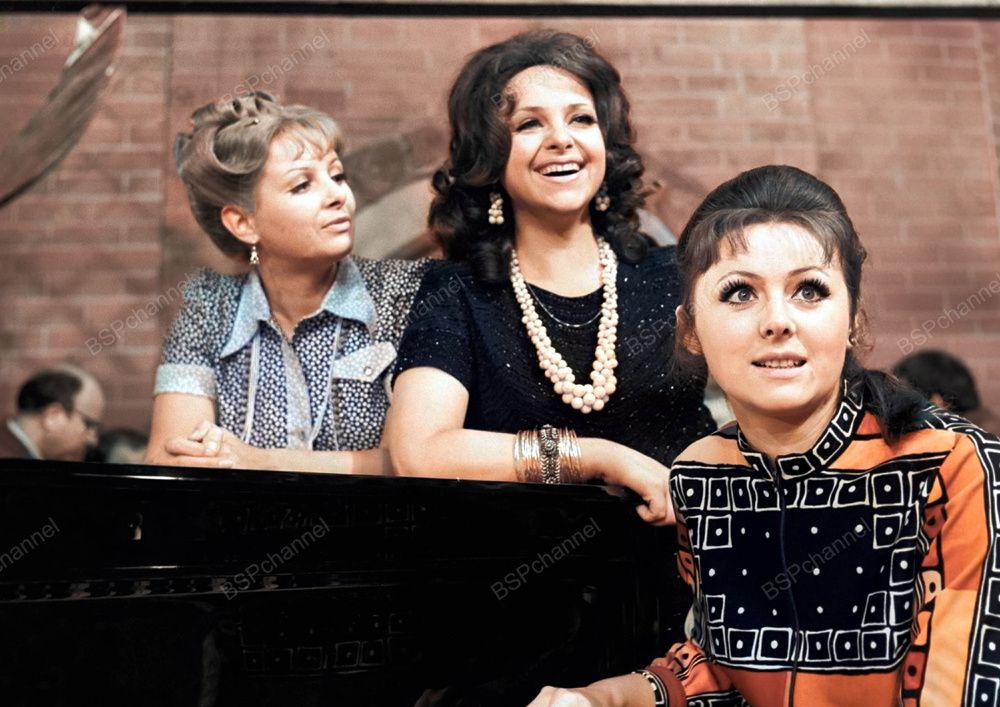 1966 год стал годом рождения настоящей легенды советского телевидения. С этого момента началась история программы, которая быстро завоевала сердца миллионов и на протяжении 15 лет оставалась одной из самых популярных и ожидаемых.Сначала - на чёрно-белых экранах, позже - на цветных, передача превратилась в культурный феномен, к которому с трепетом и восторгом прислушивалась вся страна.Каждый тихий субботний вечер, раз в месяц, на протяжении полтора десятилетия миллионы замирали у телевизоров в предвкушении одного - выхода любимого шоу: "Кабачок „13 стульев"".Актрисы Валентина Дмитриевна Шарыкина в роли пани Зоси, Ела Ивановна Санько в роли пани Ванды и Наталья Игоревна Селезнева в роли пани Катарины (слева направо) на съемках одного из выпусков развлекательной телевизионной передачи.