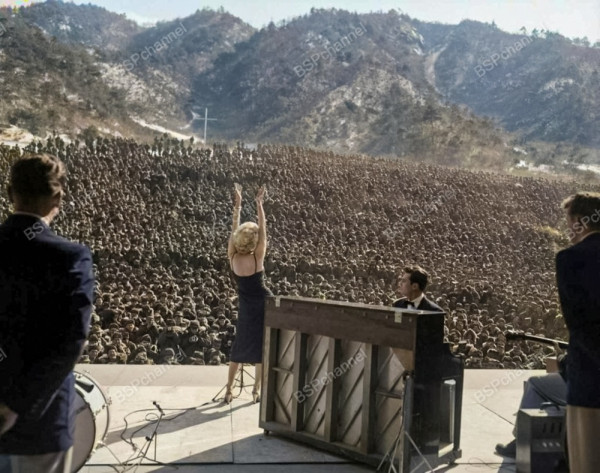 Мэрилин Монро поет для солдат в Корее, 1954 год.