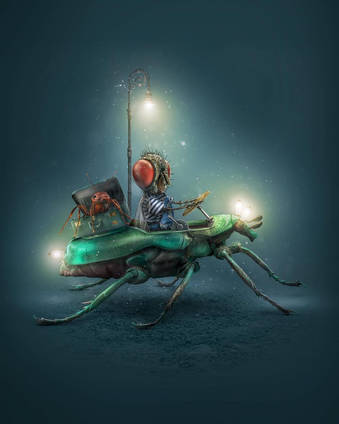 Инго Линдмайер (Ingo Lindmeier) - талантливый цифровой художник из города Лёррах, Германия. В своих работах он создает удивительные образы, соединяя животных, растения, людей и различные предметы. "Почти все мои работы начинаются со страсти к сюрреализму. Часто сопровождаемая игрой со словами, картинка находит выход из моей головы через Adobe Photoshop в красочный мир изображений. Иногда ярко игривые, иногда критически тревожные, разные сюжеты находят свое место в моих творениях. Сказки и мифы вдохновляют меня так же, как музыка, природа и искусство, и являются источниками моего вдохновения", - говорит Инго.