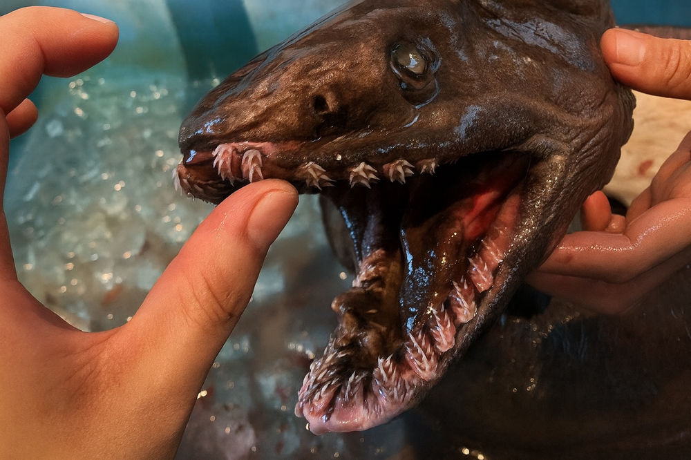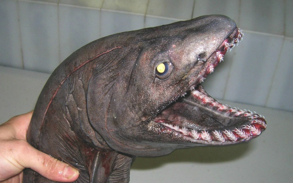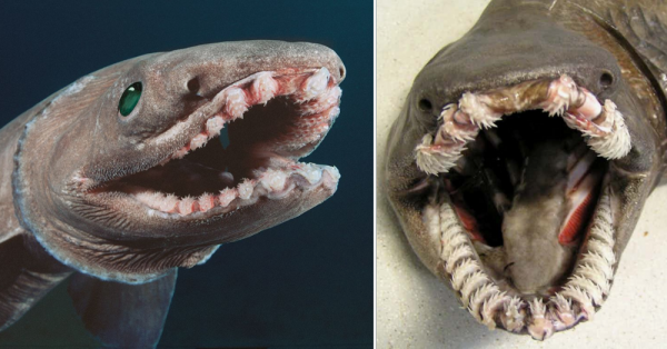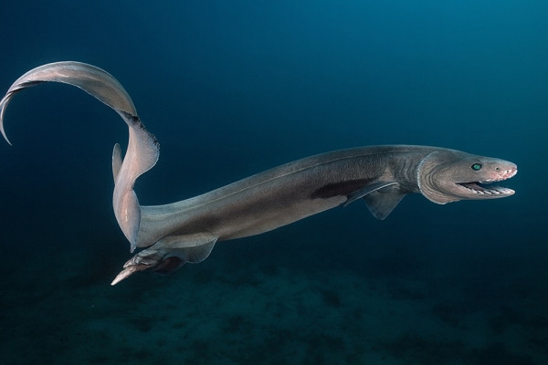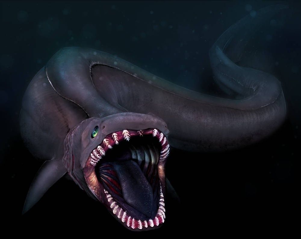 Очаровательную мордашку плащеносной акулы, или акулы-ящерицы, вы вряд ли когда-нибудь увидите вживую. Обитает рыбина в водах Тихого и Атлантического океанов, но днем выше 1200 метров она не поднимается. Поверьте, это к лучшему! Любоваться там точно нечем! Чуть приоткрытая пасть обнажает стройные ряды зубов-трезубцев. Их во рту около 300. Вытянутая извивающаяся тушка вырастает до 2 метров. Она больше напоминает змеиную, нежели рыбью. Но самая примечательная черта - жабры. Длинные лоскуты кожи, будто плащ, развиваются в потоках воды и надуваются, как капюшон кобры. Согласитесь, не так вы представляете себе типичную акулу.