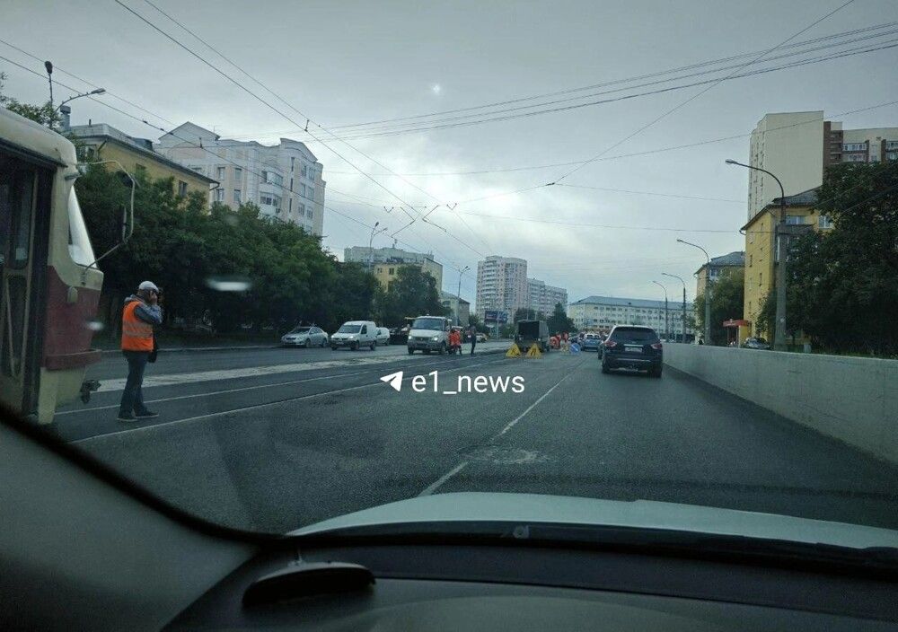 В Екатеринбурге произошёл комичный инцидент: в районе Уралмаш трамвай сошёл с путей из-за слишком некомпетентных усердных сотрудников коммунальных служб. Дорожники ночью заасфальтировали пути, а водитель трамвая не успел среагировать. Происшествие случилось утром, на первом рейсе трамвая. В салоне находились люди, но все, к счастью, отделались лёгким испугом.В администрации города рассказали, что несмотря на минимальные последствия, Гортранс будет взыскивать с дорожников деньги за убытки."Ночью делали, торопились, видимо. Гортранс будет выставлять подрядчикам какие-то иски и претензии материальные. Там пять часов простоя, по деньгам - не знаем пока сколько, там сложная формула. С пассажирами всё нормально. Там же ровная поверхность была - трамвай съехал с колеи на асфальт. Он на поворот входил, и ребро колеса вышло на асфальт - съехала вся тележка. Назад чуть-чуть оттянули и поставили на рельсы. Потом продолбили асфальт", - сообщили в мэрии города.