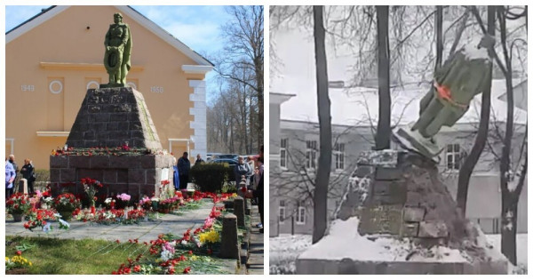 Неравнодушные жители города возложили цветы и поставили свечи на место, где ранее были захоронены свыше 40 советских солдат и стоял памятник Скорбящей матери. Однако местные радикалы в ответ на это неподалёку нарисовали свастику. Известно, что после этого эпизода, который можно назвать частью кампании по ликвидации памятников и захоронений, российская сторона направила ноту в МИД Эстонии Об этом