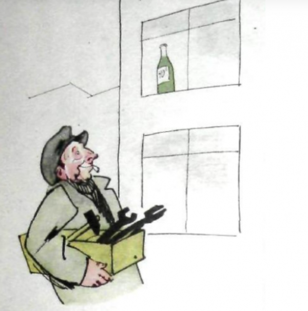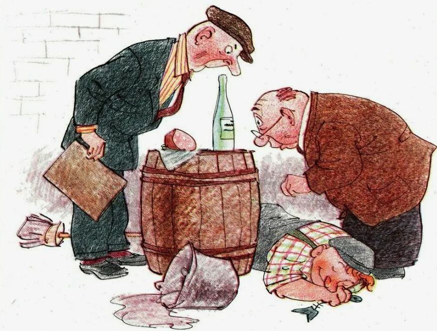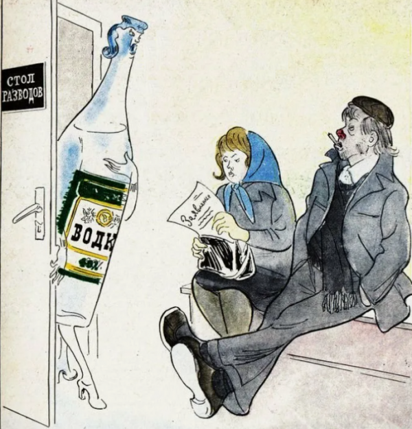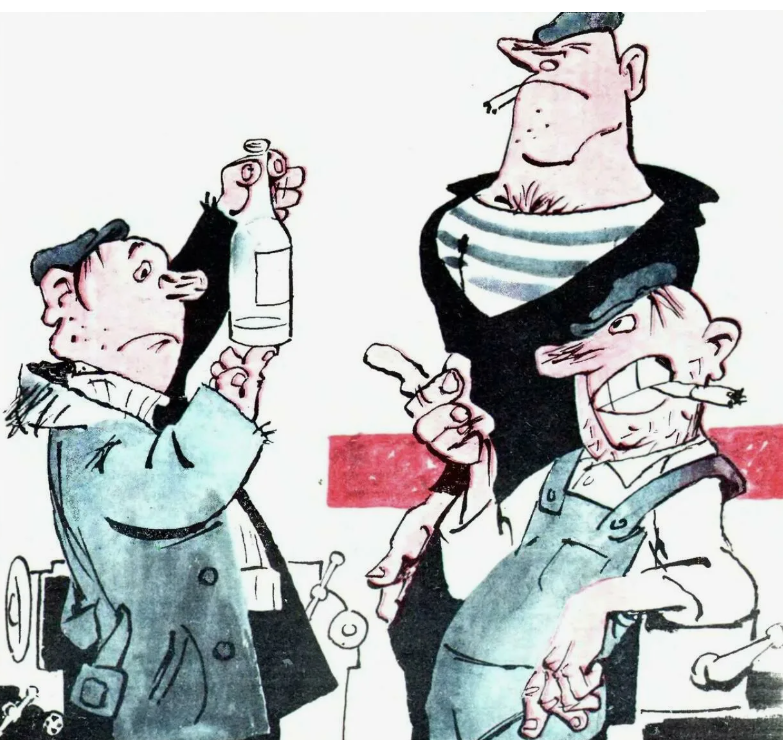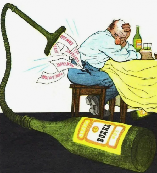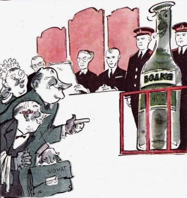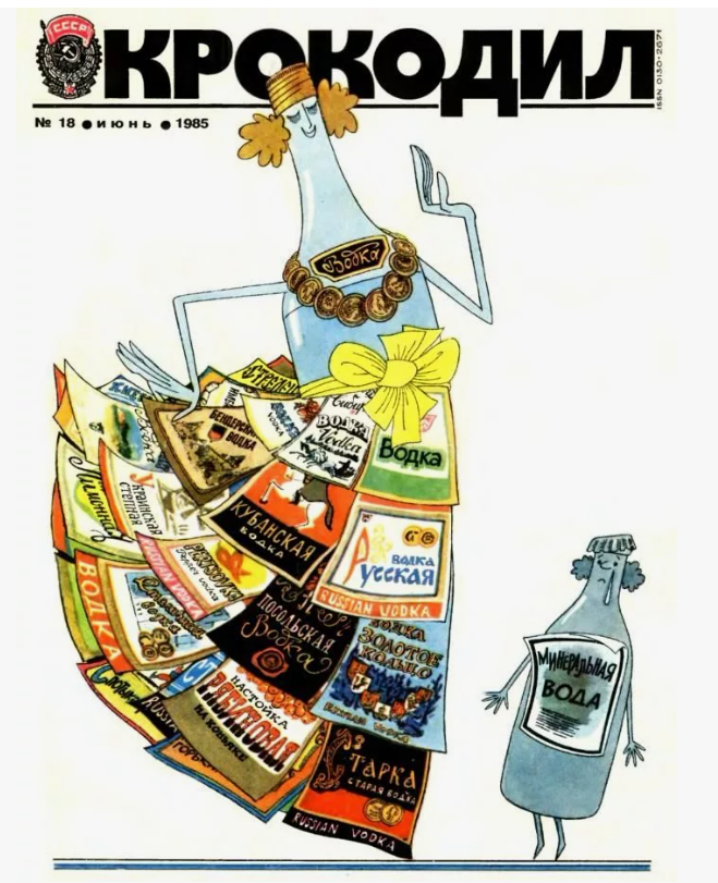 Производство и потребление водки в СССР были и под прицелом всеми любимого журнала "Крокодил". На его страницах публиковались различные юмористические фельетоны и карикатуры о пьяницах, распитии алкоголя в общественных местах, вытрезвителях и самогоноварении. Представляю на выш суд несколько сюжетов из этого легендарного издания.