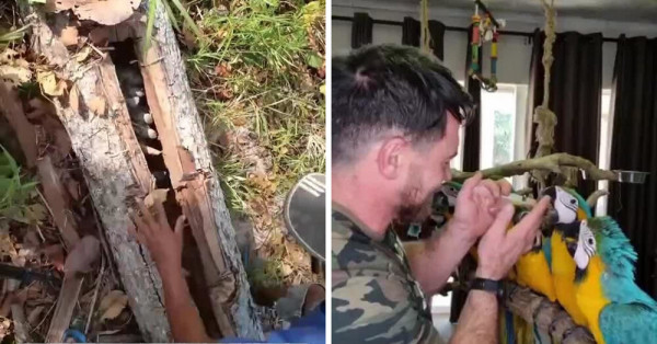 Молодой человек обнаружил в лесу брошенных птенцов попугаев и решил забрать их домой. Он заботился о малышах, выкармливал и выхаживал их. Со временем все птенцы окрепли и превратились в здоровых взрослых птиц, оставаясь рядом со своим спасителем.