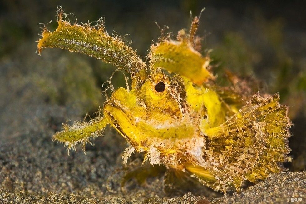 скорпена Амбона. Её внешний вид шокирует: тело покрыто кожистыми наростами, напоминающими водоросли, над глазами торчат "брови", а окраска идеально сливается с окружением. На дне среди камней или кораллов эту рыбу почти невозможно заметить.Главное оружие скорпены - ядовитые шипы. Они находятся на спинном плавнике, и их укол может быть смертельно опасен для человека. Яд вызывает сильнейшую боль, паралич и даже остановку дыхания. Именно поэтому скорпен часто называют "морскими убийцами".Эти рыбы ведут оседлый образ жизни. Они затаиваются в засаде, поджидая добычу: мелких рыб, крабов и креветок. Стоит жертве подплыть ближе, скорпена молниеносно раскрывает рот и всасывает её целиком.