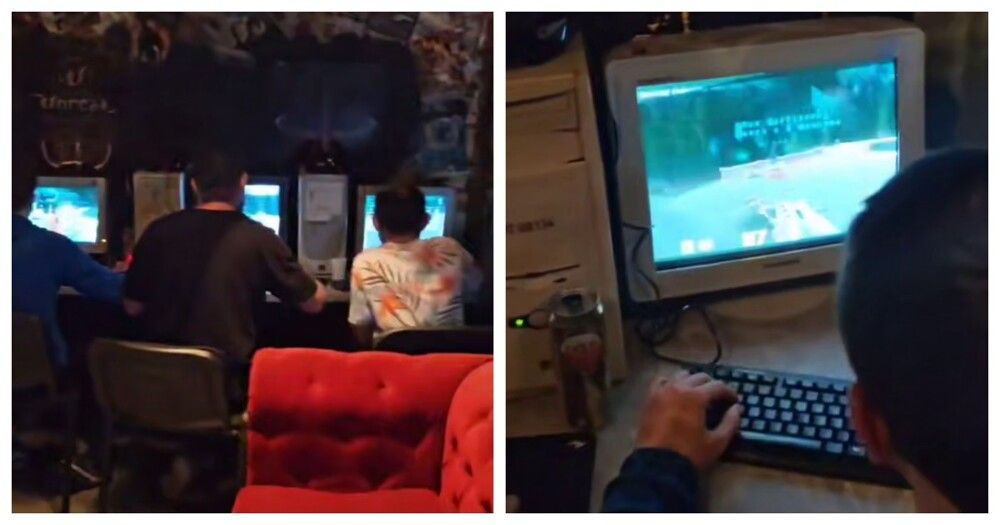 Умельцы сделали компьютерный клуб в стиле нулевых в гараже под Уфой. Внутри старые компьютеры с пузатыми мониторами, ковры на стенах и постеры с героями игр прошлых лет.