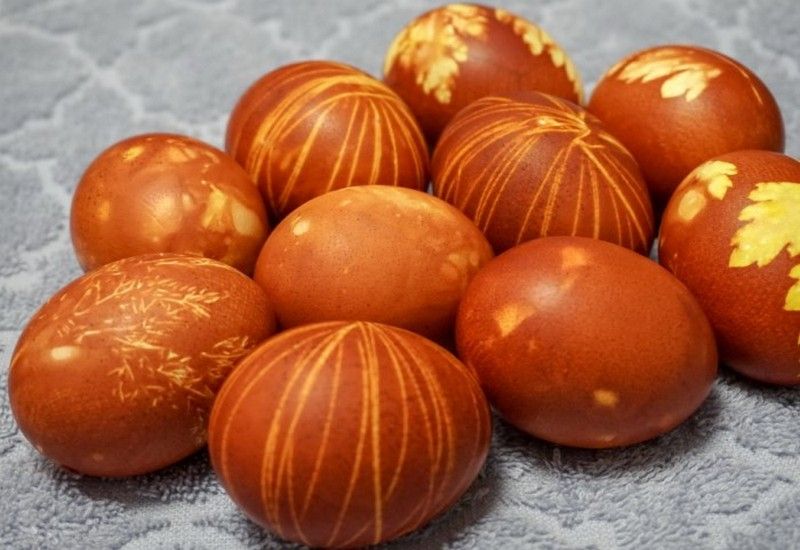 Недаром говорят, что голь на выдумки хитра, ведь именно так и появилась эта традиция. У русских крестьян не было средств, чтобы украшать пасхальные яйца медовыми красками или золотой фольгой. Зато под рукой было полно луковой шелухи. Иногда яйца обматывали нитками, создавая узор, и в таком виде отправляли краситься. Яйца получались не только красивого оттенка, но и вкуснее обычных. Особенно, если скорлупа немного треснула, и луковый аромат проникал внутрь.novate.ru