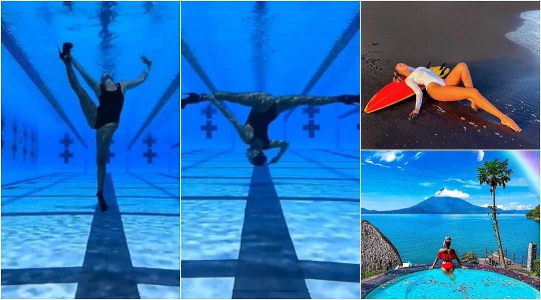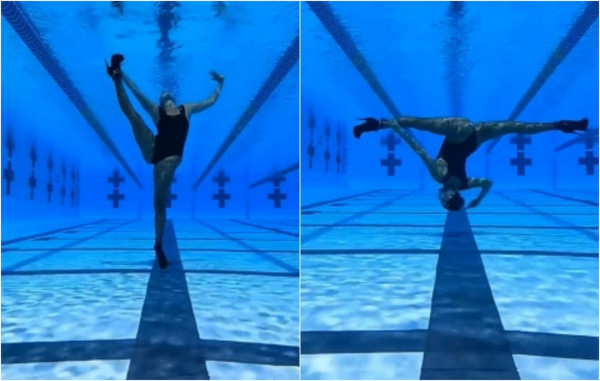 Чемпионка по синхронному плаванию продемонстрировала свои непринужденные навыки подводного танца на TikTok, надев туфли на шпильках и ажурные колготки.