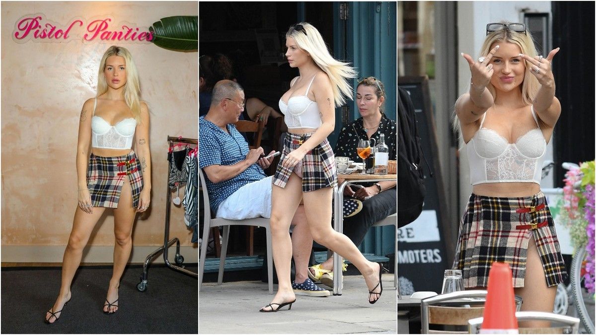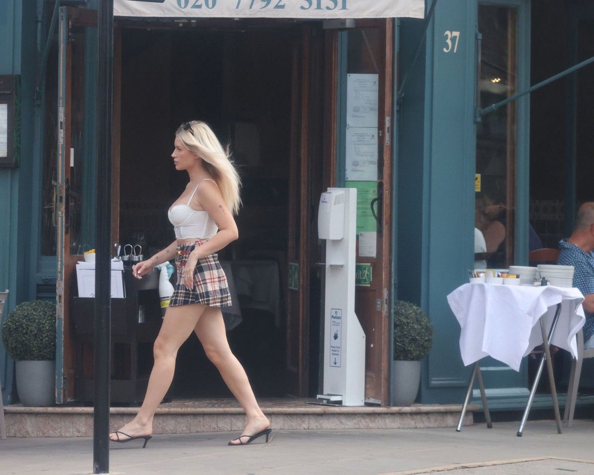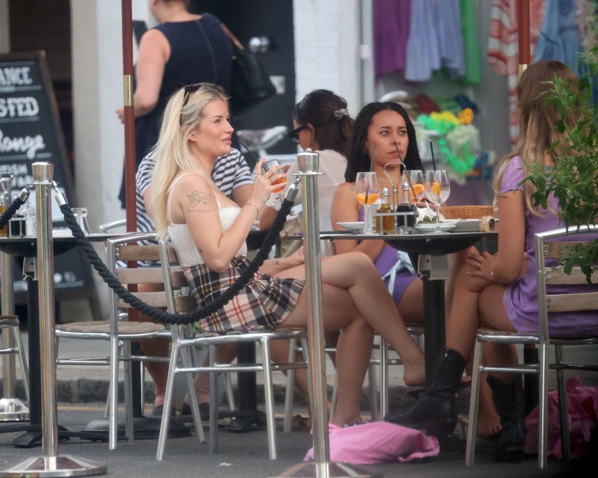 23-летняя британская фотомодель Лотти Мосс (Lottie Moss) в коротенькой юбочке и топе с подругами в Ноттинг-Хилл, Лондон.