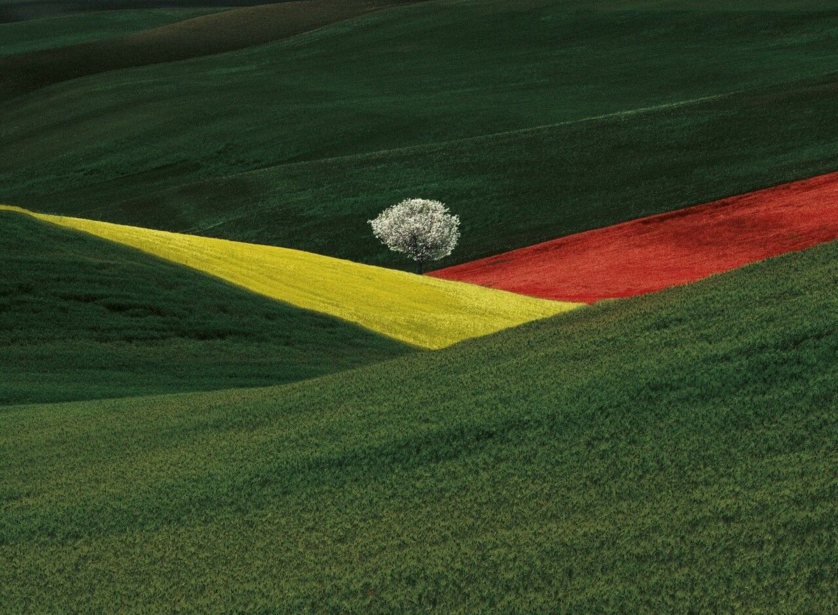 Франко Фонтана создал очень узнаваемый почерк. Мир фотографа - это головоломка в стиле минимализм. Взаимодействие цвета и формы занимает ключевое место в творчестве отца итальянского графического пейзажа, какой бы ни была натура: асфальт с дорожными разметками, поля Тосканы, словно сложенные из цветных блоков городские улицы, испанский пляж и морской горизонт или тело в бассейне.