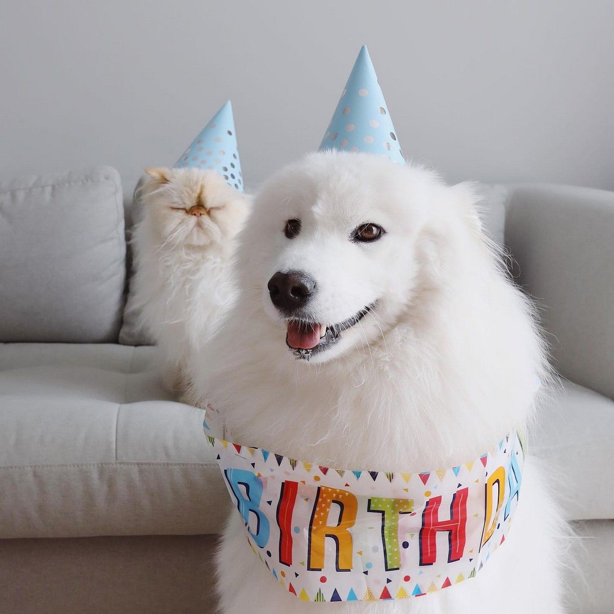 Дружелюбный пес Каспер широко улыбается, а кот Ромео хмурится. Но противоположности притягиваются, так как шестилетний улыбчивый самоед Каспер - лучший приятель хмурого двухлетнего гималайского персидского кота Ромео. Эти очаровательные пушистые друзья стали звездами социальных сетей из-за их совершенно разных выражений на мордочках и поведения. Они живут с 29-летней хозяйкой Ринсой Ли из Крайстчерча, Новая Зеландия, и вместе путешествуют по сельской местности.