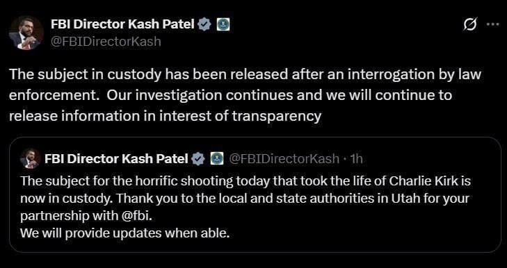 Смерть Кирка взорвала Америку. Его сторонники, включая Трампа, называют это политическим убийством и винят "радикальных леваков". Трамп уже требует смертной казни, а губернатор Юты Спенсер Кокс обещает "все возможное". Консерваторы устраивают митинги и молятся за Кирка, как за мученика. Его вдова, Эрика Кирк, выступила с речью, обещая продолжить дело мужа и призывая молодежь вступать в Turning Point USA. Даже Борис Джонсон, экс-премьер Британии, назвал Кирка "жертвой трусости тех, кто не мог победить его в споре".А противники? Они не скрывают радости. В соцсетях полно постов, где убийство Кирка называют "справедливостью". Демократы Юты получили угрозы, в их офисе даже оставили голосовое с оскорблениями: "террористы и убийцы".Кирк был фигурой спорной: для одних он был голосом правды, для других - провокатором, который разжигал рознь. Его шоу, где он называл мэров "преступниками" за отказ сотрудничать с миграционной службой или делал ложные заявления о смерти Джорджа Флойда, не добавляло ему друзей. Но убийство? Это новый уровень эскалации. Америка, которая гордилась свободой слова, теперь пожинает плоды: один выстрел, и герой для одних становится мишенью для других.Естественно, нам, как сторонним наблюдателям, на этот движ параллельно, но на всякий случай продолжаем вести наблюдение.