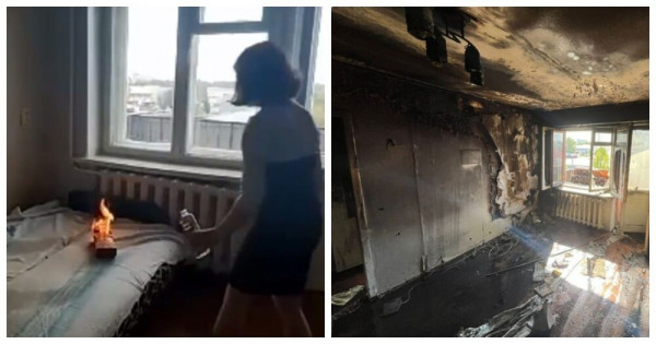 В Бугульме чрезвычайно инфантильная 19-летняя девушка по имени Александра устроила в квартире пожар, чтобы снять вирусное видео и попасть в тренды "ТикТока". При помощи жидкости для розжига она подожгла свою кровать и, видимо, надеялась, что успеет заснять "горячий" ролик, а затем потушить пылающую простынь. Но внезапно что-то пошло не так. Огонь быстро охватил всю кровать, начал гореть матрас, девушка в попытке остановить возгорание заметалась по квартире, но в итоге у неё всё же хватило ума вызвать пожарных.К счастью, сотрудники МЧС оперативно ликвидировали возгорание и квартира пострадала не так сильно, как могла бы. Сообщается, что из-за выходки блогерши пострадала страдающая астмой соседка, а другим соседям пришлось на время съехать из квартир из-за невыносимого запаха гари.После случившегося рыдающая Александра попыталась убедить отца и пожарных, что возгорание случилось из-за роутера - якобы произошло короткое замыкание в розетке рядом с кроватью. В таких вещах пожарных вряд ли можно обмануть, но они, судя по всему, не стали ничего говорить мужчине. Но тот и сам докопался до истины, просто проверив телефон дочери. В итоге найденные у Александры ролики стали достоянием общественности."Девочка сама подожгла свою квартиру для снятия "красивого тик тока" Пусть наш город знает своих героев! Придайте максимальной огласке, чтобы привлечь к ответственности эту девочку за самоподжог!" - говорится в сообщении городского портала.Отмечается, что инцидент произошёл 10 сентября на улице Чайковского, 12. Какое наказание грозит героине видео - неизвестно.