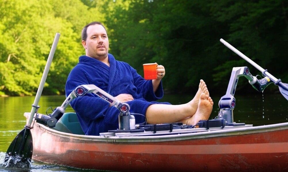 Дейв Нивински решил, что у настоящего технаря даже речные прогулки должны быть автоматизированы и заказал пару роборук у китайской Agilex Robotics (по ~210 000 руб. за штуку!), а потом прицепил к ним вёсла и переписал ПО, настроив на греблю.