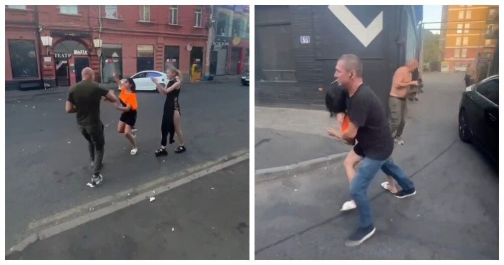 В краснодарском клубе две девушки решили помериться силой с одним крупным мужчиной. Разворачивалась настоящая схватка, во время которой слышались крики: "Дядя, не трогай их!" и "Дядя, не бей!".