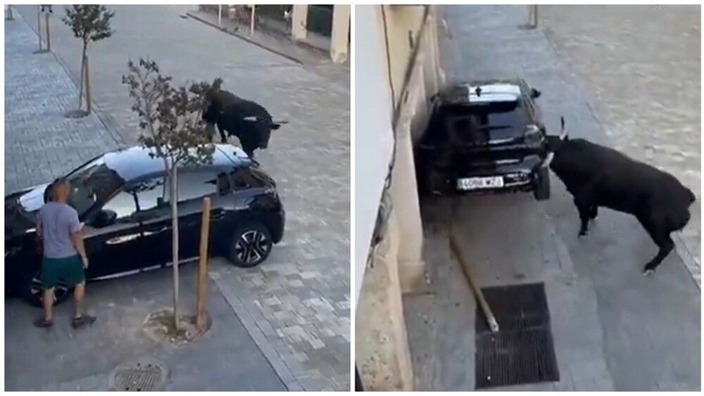 Жители муниципалитета Тендилья стали свидетелями неожиданного шоу: разъярённый бык вышел на улицу и с силой протаранил автомобиль. Машина оказалась смещена с места, но обошлось без жертв.
