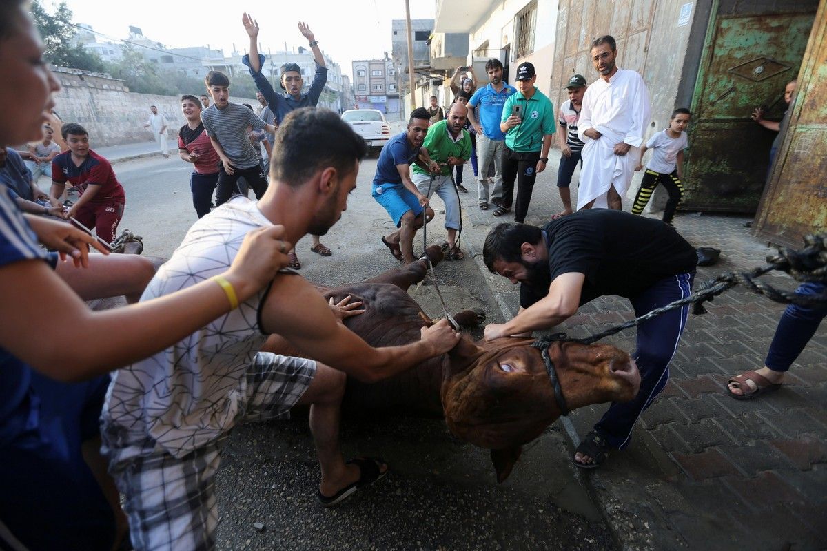 Кульминацией праздника в некоторых странах является ритуальное жертвоприношение.Городские улицы краснеют, когда обезглавленных коров и коз волокут по улицам, в то время как тысячи верующих наблюдают кровавый ритуал.Родственники соберутся на торжества и обменяются подарками, открытками и деньгами, а также пожертвуют на благотворительность.Верующим не полагается ничего есть, пока они не вернутся с молитвы.Некоторые мусульмане также отправятся в Мекку и окрестности Саудовской Аравии, чтобы совершить Хадж - паломничество, которое является одним из пяти столпов ислама.Согласно Корану, Авраам был готов принести в жертву своего сына Измаила в последнем акте веры.В то время как он находится в отчаянии из-за этого решения, его сын поручил своему отцу уважать волю Аллаха.И когда они оба стоят на горе Арафат, а Авраам готов перерезать горло своему сыну, ангел Гавриил сказал ему, что он уже продемонстрировал свою любовь к Аллаху.Вместо мальчика был зарезан козел, и современные мусульмане копируют этот акт, убивая подобных животных.Мусульмане верят, что, убивая животных и разделывая их трупы, они напоминают себе, что не должны отвлекаться на материальные блага и должны вместо этого преданно служить Аллаху.Животных разрезают на три части, одну из которых отдают бедным и голодным, вторую - друзьям семьи или родственникам, а третью - семье, которой принадлежало животное.Противоречивая традиция соблюдается во всем мире, по разным правилам в зависимости от страны.