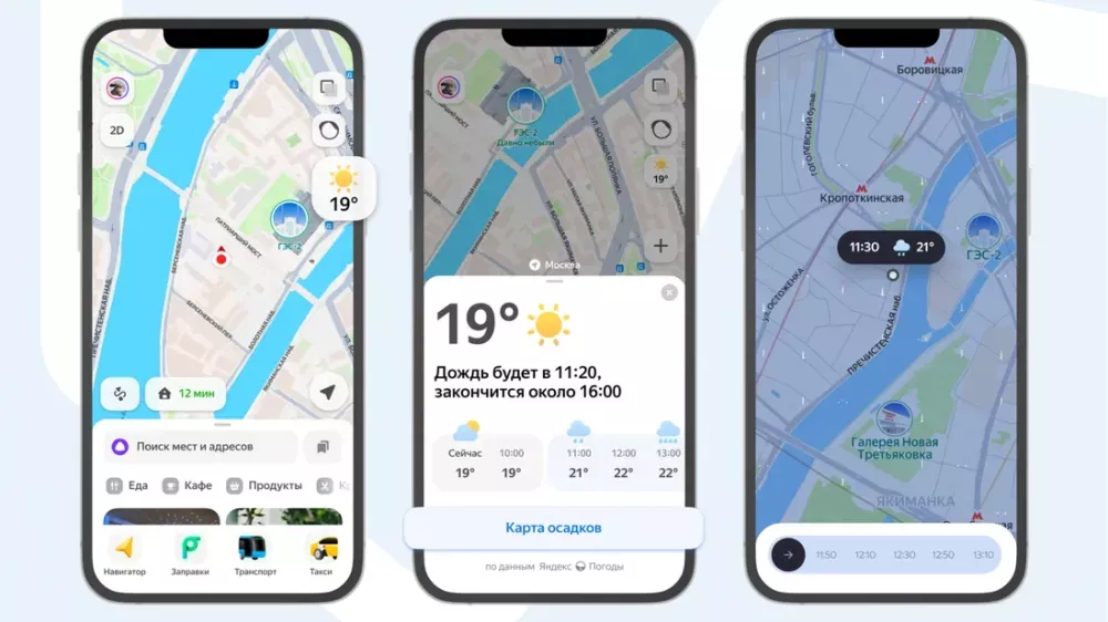 Яндекс в очередной раз расширил функционал сервиса Карты. Теперь приложение может как показывать погоду в заданном районе, так и предсказывать осадки в двухчасовой перспективе. Разработчики считают, что благодаря этому планировать поездки будет ещё проще.