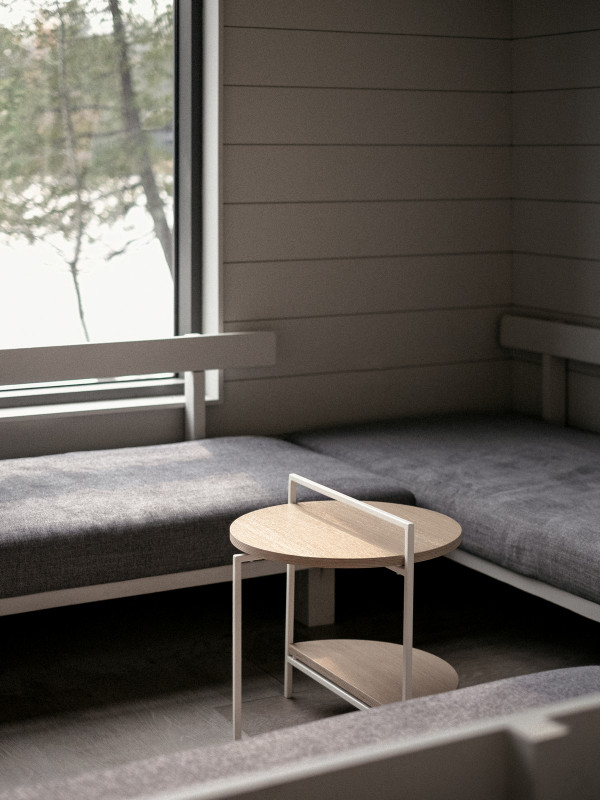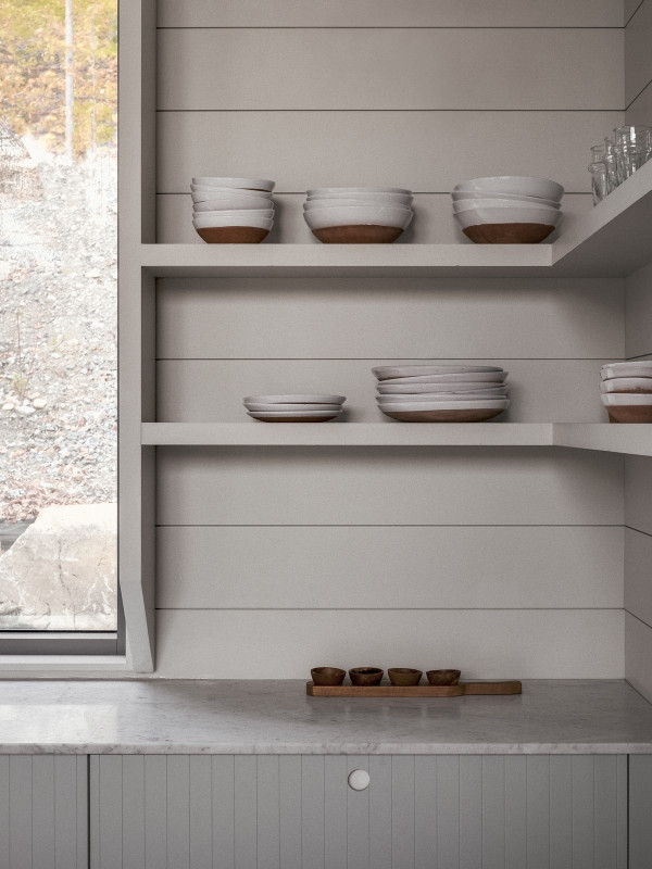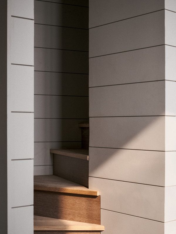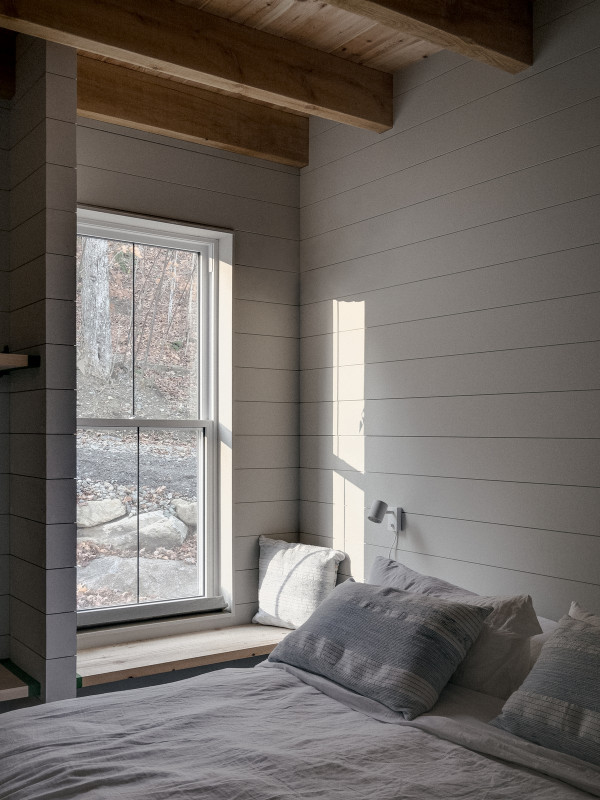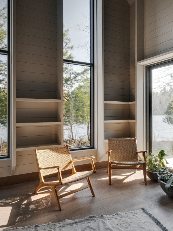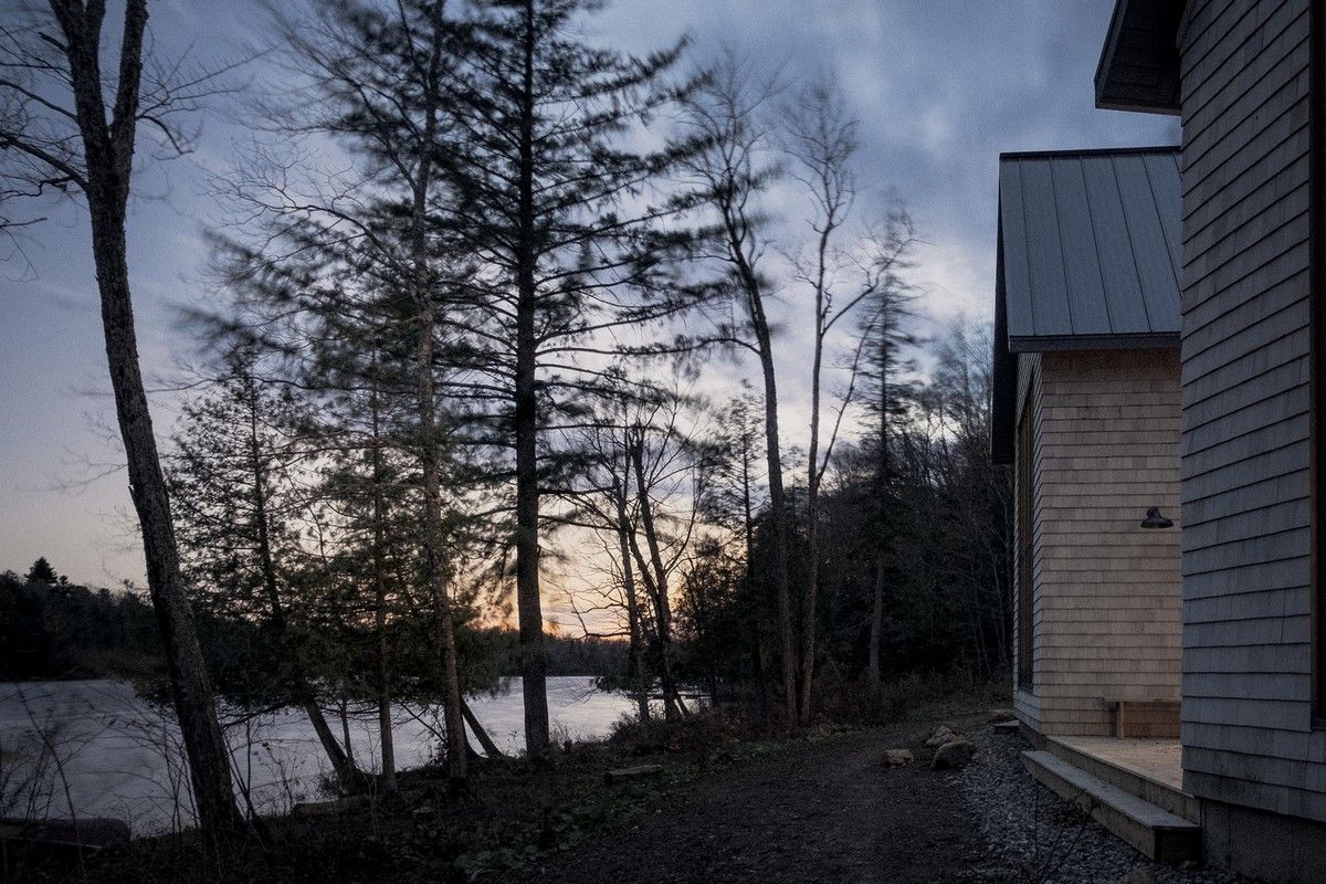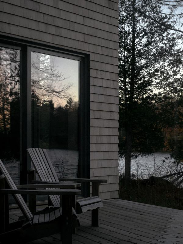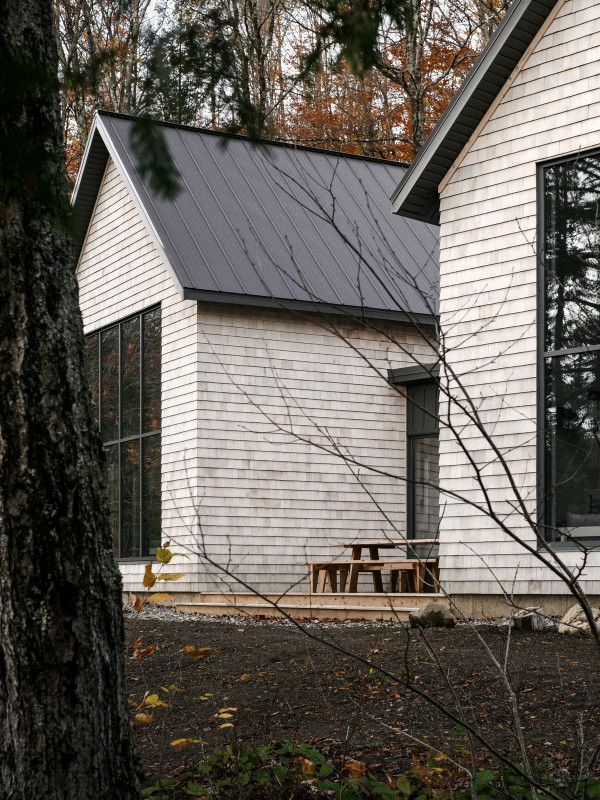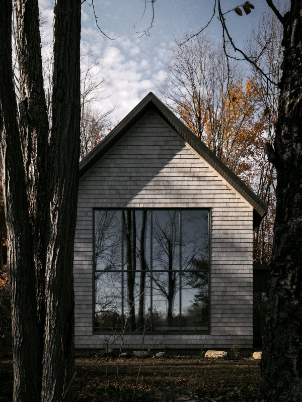 Заказчик хотел построить три отдельных, но взаимосвязанных дома. Самый западный дом предназначен для владельцев. Благодаря спальне, зоне отдыха, ванной и отдельной кухне, он может быть полностью закрыт для двух других домов. Самый большой дом на востоке был спроектирован для сдачи в аренду и может вместить до двух семей, с тремя комнатами и общежитием на втором этаже. В третьем доме, расположенном между двумя другими, есть общее пространство с кухней, обеденной зоной и гостиной. Длинный проход пересекает три резиденции и разделяет каждое здание на две части, создавая подпространства внутри и между домами. Южные области на этой линии - это общие жилые помещения, выходящие на озеро, а северные зарезервированы для комнат.В защищенном зале, соединяющем дома, кладовые помещения размещены на северной стороне, закрывая вид с дороги, а южная сторона открыта для озера и пропускает много света. Стеклянный коридор, пересекающий дома, подчёркивает путь своими импостами и меняющимся светом, создавая приглашение к странствиям и пространство, способствующее созерцанию и общению с природой. Кирпичный холл контрастирует с деревянными полами, выступая как отличительный элемент, так и объединяющий три дома. Городская материальность кирпича играет с понятиями интерьера и экстерьера, равно как мебель и проёмы, которые способствуют соединению с озером и стирают границы между внутренней и внешней стороной, создавая у людей внутри дома впечатление, что они обеими ногами находятся в вода.Трио веерообразных склонов коттеджа предлагает разные углы и виды на озеро и окружающую природу. Основание покрытия террасы обеспечивает прямую связь с землей. Две небольшие террасы, выходящие на юг и расположенные между домами, защищены от ветра, создавая микроклимат, который способствует использованию пространства немного позже в прохладный сезон. С уважением относясь к территории и окружающей среде, компания APPAREIL Architecture стремилась поддерживать территорию, максимально сохраняя её естественное состояние, добавляя в мебель только местные элементы. Внешнее покрытие из кедра является местным и долговечным для вневременного стиля. Проёмы выполнены на языке традиционного дома, предлагая модернизированную версию с большими окнами. Короткие свесы крыши придают коттеджу более современный вид.