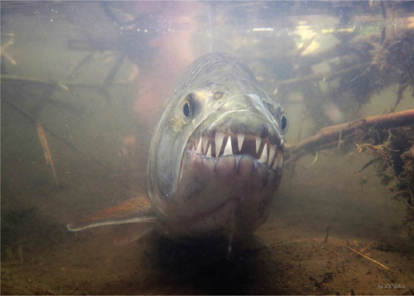 Ведь её зубы - это что-то страшное. 30 кинжалов длиной до 2,5 сантиметров торчат из пасти, превращая её в идеальный смертоносный капкан, способный перекусить напополам сома со всеми его костями и внутренностями. И если вам этого мало - внутри глотки у неё спрятан ещё один комплект зубов, больше напоминающих акульи. Они прекрасно подходят для разрезания мяса и рыболовных лесок.