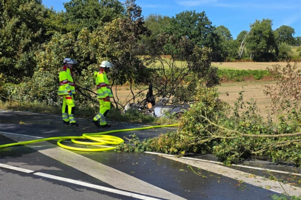 На западе Германии произошла ужасная трагедия, унесшая жизни 43-летнего мужчины и двух 9-летних детей. Автомобиль Tesla Model S, в котором они находились, съехал с дороги и врезался в дерево. Столкновение вызвало пожар, который быстро охватил транспортное средство. К сожалению, люди оказались в огненной ловушке, не имея возможности выбраться.