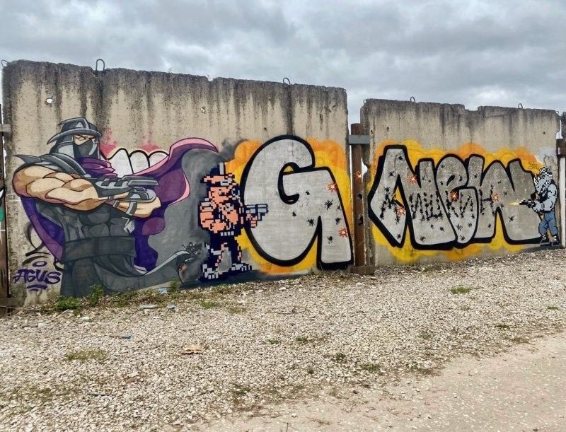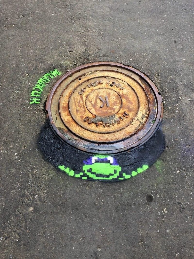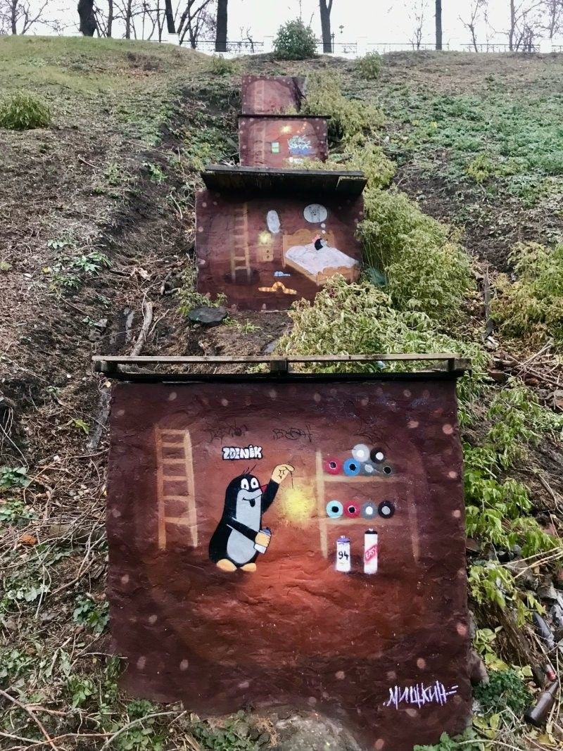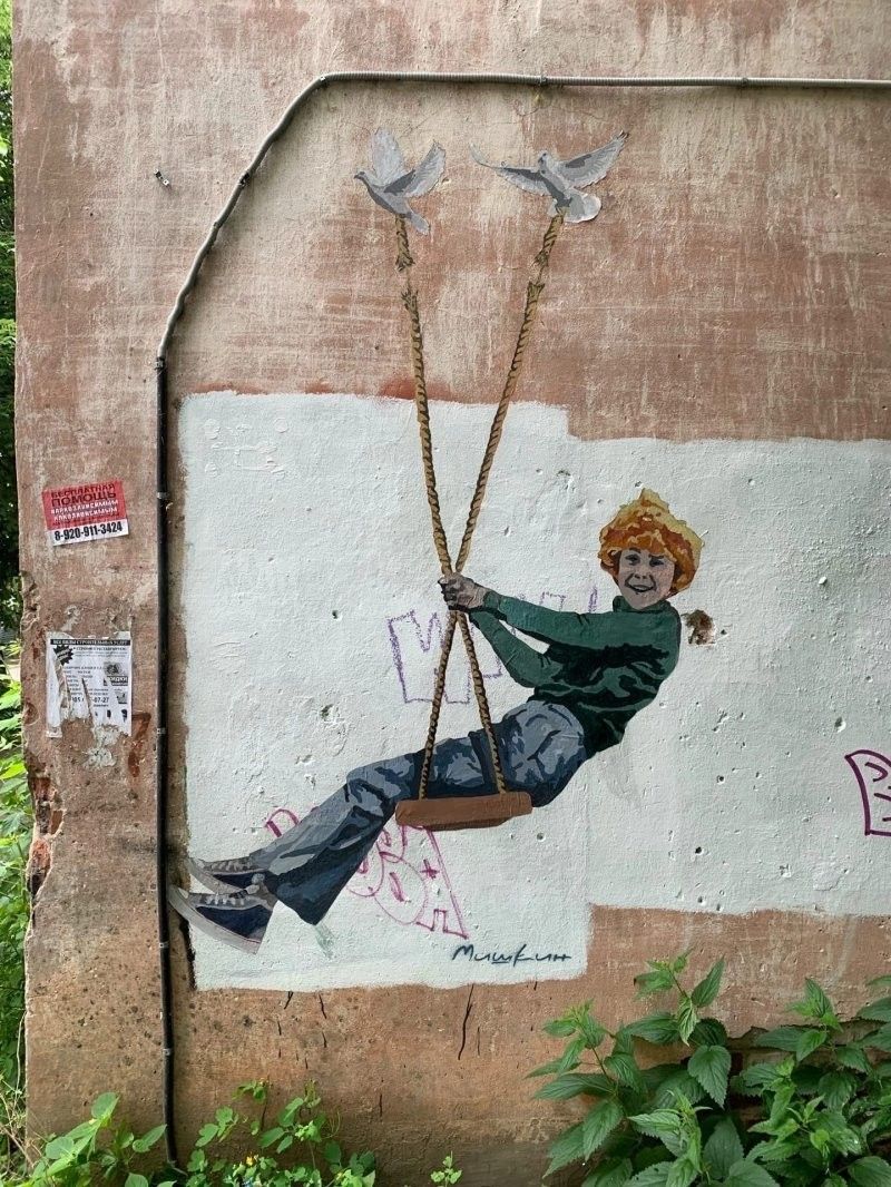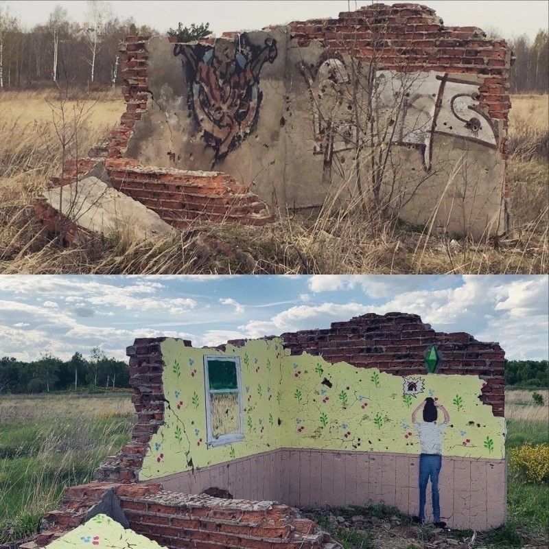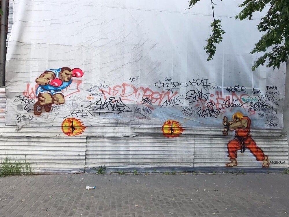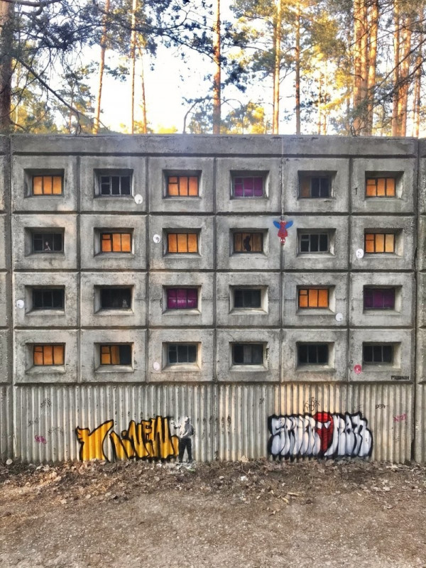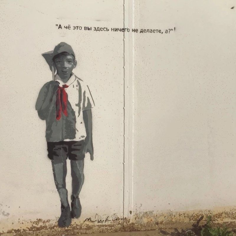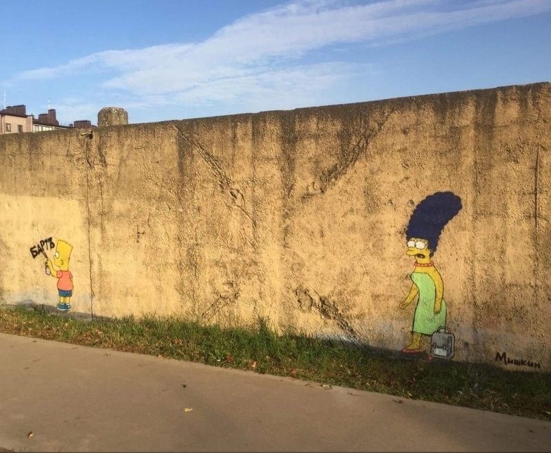 Комментарий от автора:"Несколько лет я наблюдал за этими стенами, на них то и дело появлялись надписи, закрашивались, снова и снова. Эта борьба казалась бесконечной, получился даже некий жэк-арт из разного цвета кусочков по всей стене. Так происходит же много где, данный процесс будто часть "матрицы" и кажется нескончаемым.Здесь же я являясь зрителем, запечатлел и отразил этот момент по-своему.)Другие уличные работы автора