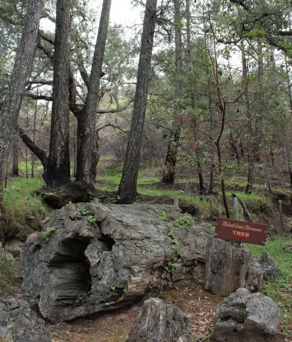 Судьба этого места была бурной. Оно много раз переходило из рук в руки, пока не превратилось в уютный частный музей. В 1880-х годах тропами каменного леса бродил Роберт Льюис Стивенсон, увековечивший свои впечатления и образ его эксцентричного хозяина в произведении "Поселенцы Силверадо". Сегодня память о писателе хранит дерево, носящее его имя. Новая глава славы леса началась в 1914 году с приходом Олли Боки. Она была мастером пиара: по её инициативе один окаменелый ствол отправился в Нью-Йорк, а другой стал звездой Панамо-Тихоокеанской международной выставки в Сан-Франциско в 1915 году.