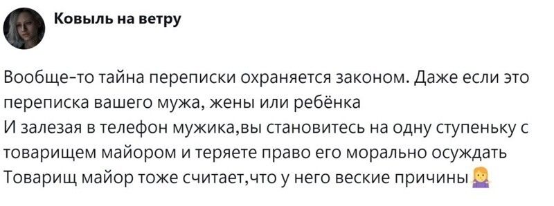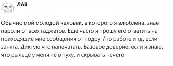 А вы считаете допустимым тайком проверять гаджет супруга или партнёра? Аргументируйте свою позицию в комментариях.
