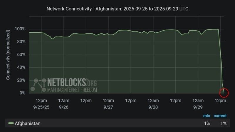 NetBlocks связывает отключение интернета по всей стране с проводимой талибами политикой по "предотвращению безнравственности". О своих планах в Талибане рассказали две недели назад. 18 сентября по приказу лидера Афганистана Хайбатуллы Ахундзады широкополосный интернет был отключён в 11 из 34 провинций. После этого кабульский аэропорт начал работать с перебоями, поскольку пассажиры из провинций Балх, Тахар, Баглана и Бадахшан банально не могли подтвердить билеты онлайн. Как сообщают "Известия", сегодня аэропорт Кабула отменил все рейсы.По данным некоторых изданий, которые ссылаются на свои источники в правительстве страны, Анухзада распорядился создать нового провайдера для предоставления доступа к сети исключительно госучреждениям и дипмиссиям.
