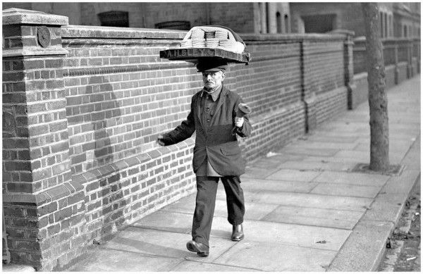 Эти уличные торговцы были обычным явлением в Британии начала XX века, поставляя свежие маффины и крампеты (разновидность оладий) в дома до того, как супермаркеты и пекарни стали широко доступны.Продавцы маффинов часто арендовали колокольчики у местных гильдий, и некоторые из них были оштрафованы за то, что звонили в них вне установленных часов, так как шум считался нарушением общественного порядка в оживлённых районах.