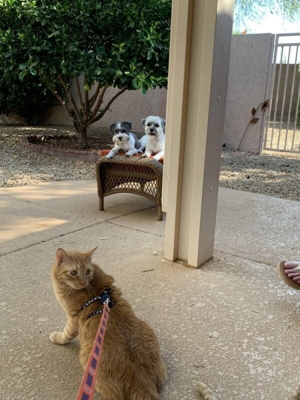 Домашние питомцы на улицах городов, населённых пунктов поменьше и мегаполисов стали обычным явлением. И обычно они заняты тем, что терпеливо ждут, когда их хозяева закончат дела.