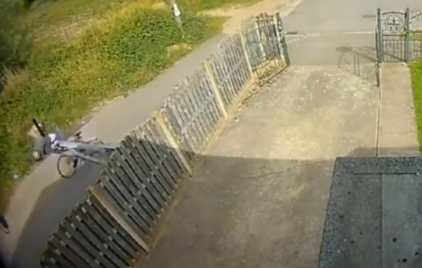Невнимательные велосипедисты и самокатчик не заметили шлагбаум и на высокой скорости влетели в него. Болезненное столкновение оказалось запечатлено на видео.