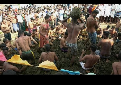 Местные жители верят, что одно из их божеств, Беерешвара Свами, родилось в коровьем навозе. За день до самой битвы устроители обходят все дома, где есть собственная корова, чтобы собрать свежий "материал". На запряженных буйволами повозках весь собранный навоз отвозят в храм, кто проводится обряд благословения. Когда все обряды завершены, кучи навоза выбрасывают на большое поле рядом с поселением. В день великой битвы смельчаки должны явиться на поле, голыми по пояс.