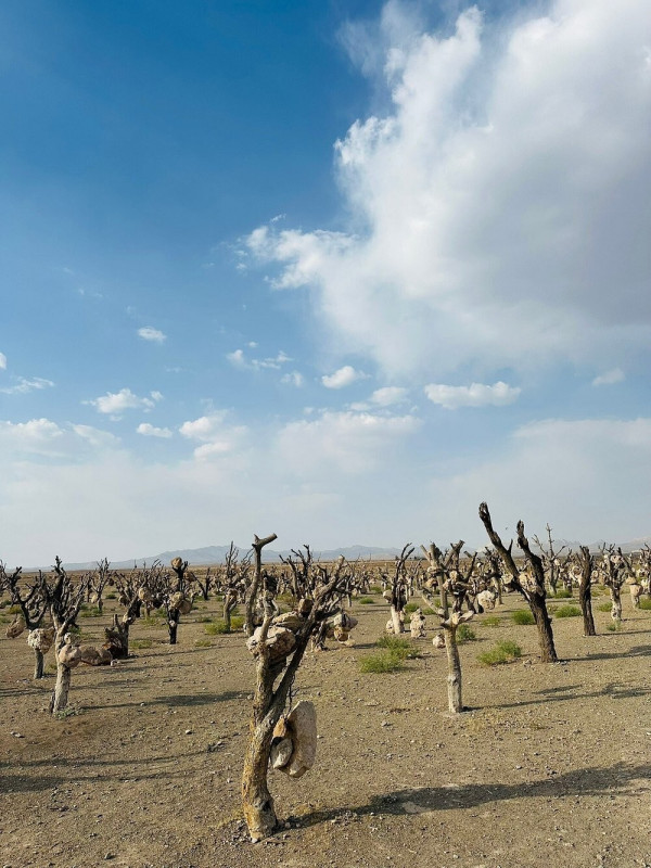 История сада не менее удивительна. Его создателем был глухонемой землевладелец по имени Дарвиш Хан Эсфандиярпур. Начиная с 1961 года, он развешивал каждый из этих камней на толстой проволоке и больших верёвках на усыхающих ветвях. Это был безмолвный протест против планов аграрной реформы, реализуемых режимом Мохаммада Реза-шаха Пехлеви, которые лишили его части земли, включая настоящий плодоносящий сад. С годами сад наполнялся новым смыслом, и с каждым значимым событием в жизни мужчины добавлялось и новое дерево.