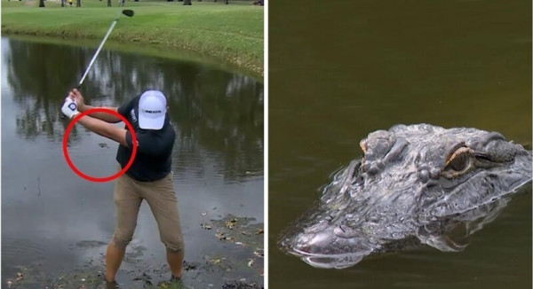 Самый строгий судьяНаблюдательная рептилия попала на видео во время турнира PGA Tour Sanderson Farms. На 11-й лунке поля в Джексоне мяч игрока угодил в водную преграду, Винсу Уэйли пришлось выйти на мелководье, но он оказался там не один - из-под воды за ним следил хищник.Однако гольфист не растерялся и спокойно выполнил бросок. Аллигатор не стал нападать - камера лишь засняла его пристальный взгляд. А Уэйли в итоге получил третье место в турнире.