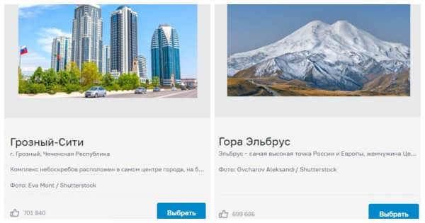 Добавим, что самая жаркая "баталия" за право занять место на оборотной стороне 500-рублёвой банкноты развернулась между горой Эльбрус и комплексом зданий в центре Грозного. Изначально самая высокая вершина России и Европы лидировала с большим отрывом, но когда агитировать за Чечню принялся Рамзан Кадыров ситуация изменилась в пользу "Грозный Сити".