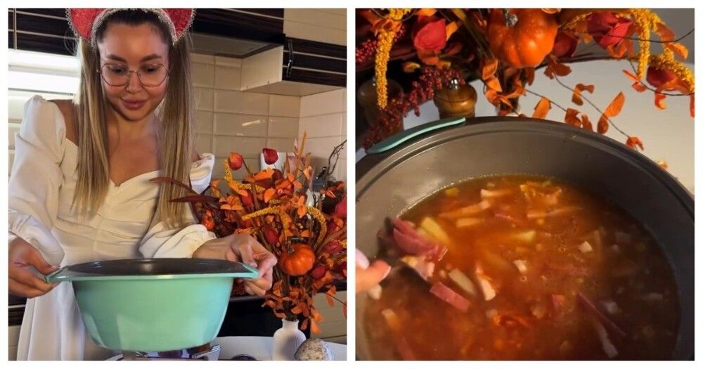 Девушка показала, как она готовит солянку для своего молодого человека. "Рубка" картофеля и мойка курицы заслуживает отдельного внимания.
