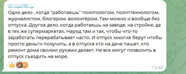 По расчётам политтехнолога, длинные праздники - особенно новогодние - приводят к потерям в сотни миллиардов рублей из-за вынужденного простоя предприятий. Он предложил ограничить выходные с 31 декабря по 5 января. Такая мера, по его словам, не только повысит производительность, но и, вопреки распространённому мнению, положительно скажется на здоровье нации, сократив длительные периоды бездействия.В своём Телеграм-канале Попов написал, что сам является трудоголиком, и не понимает, зачем россиянам столько праздничных дней.Под его постом интернет-пользователи посоветовали политтехнологу устроиться, к примеру, на завод или найти другую работу. связанную с тяжёлым физическим трудом - может, тогда он поймёт важность отдыха.