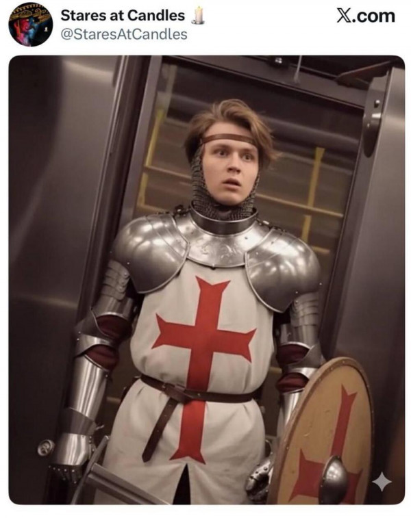 Вскоре пользователи сети начали изображать парня в образе крестоносца.