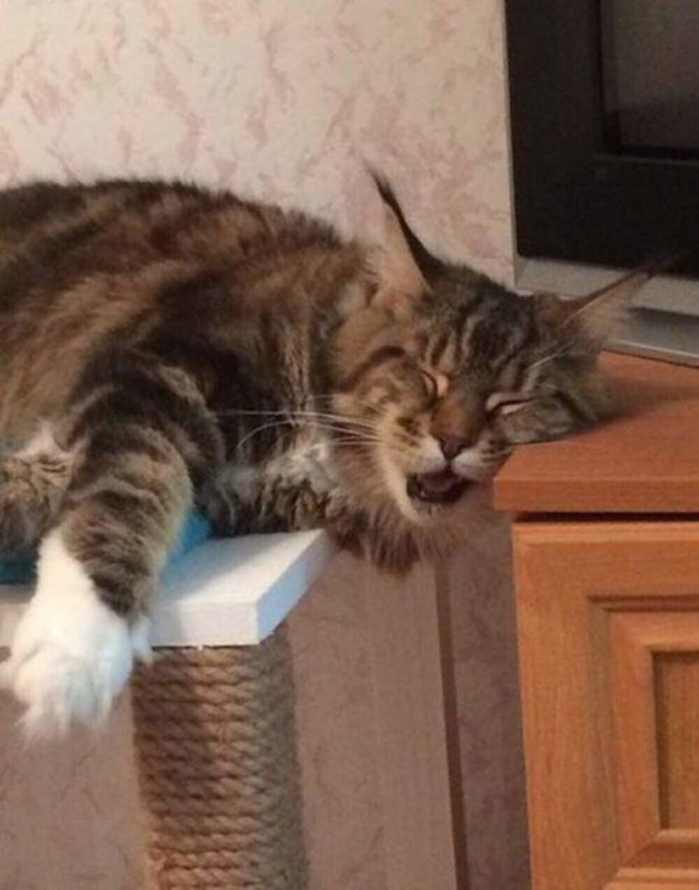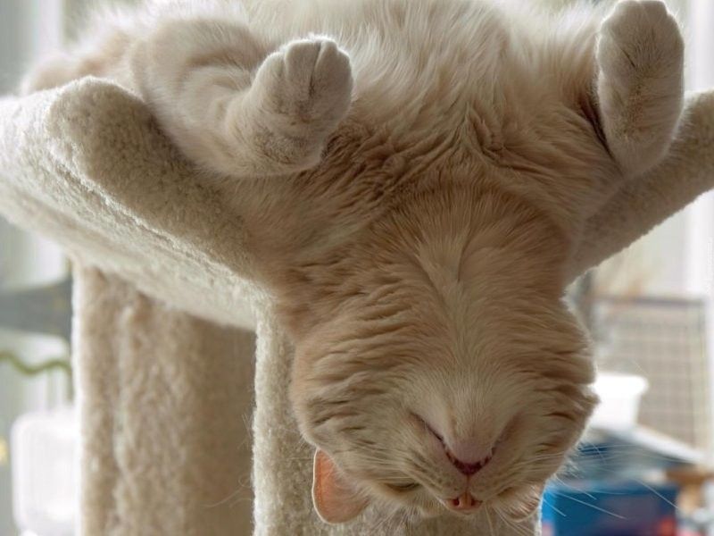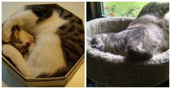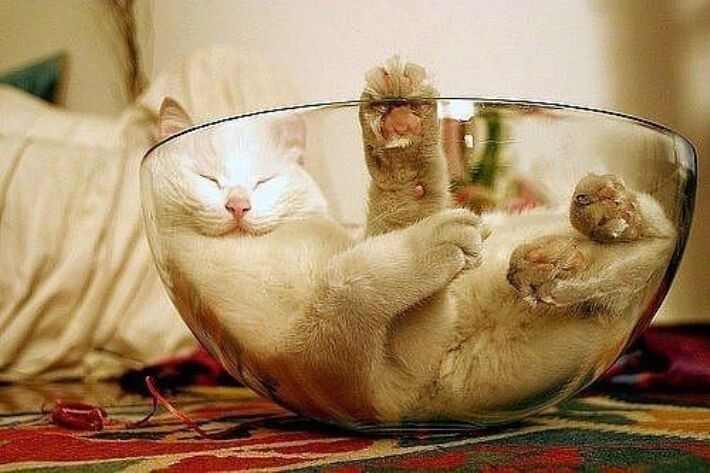 Конечно, речь идёт о котиках и сне. Дрёма может настигнуть и свалить котеек в любой момент и в самом неподходящем для этого месте. Но сонливые создания не переживают по этому поводу, а наслаждаются состоянием, в котором они проводят 2/3 (а то и больше) всего времени. Судя по этим фотографиям, пытаясь наверстать столько часов сна, кошки могут уснуть практически где угодно.