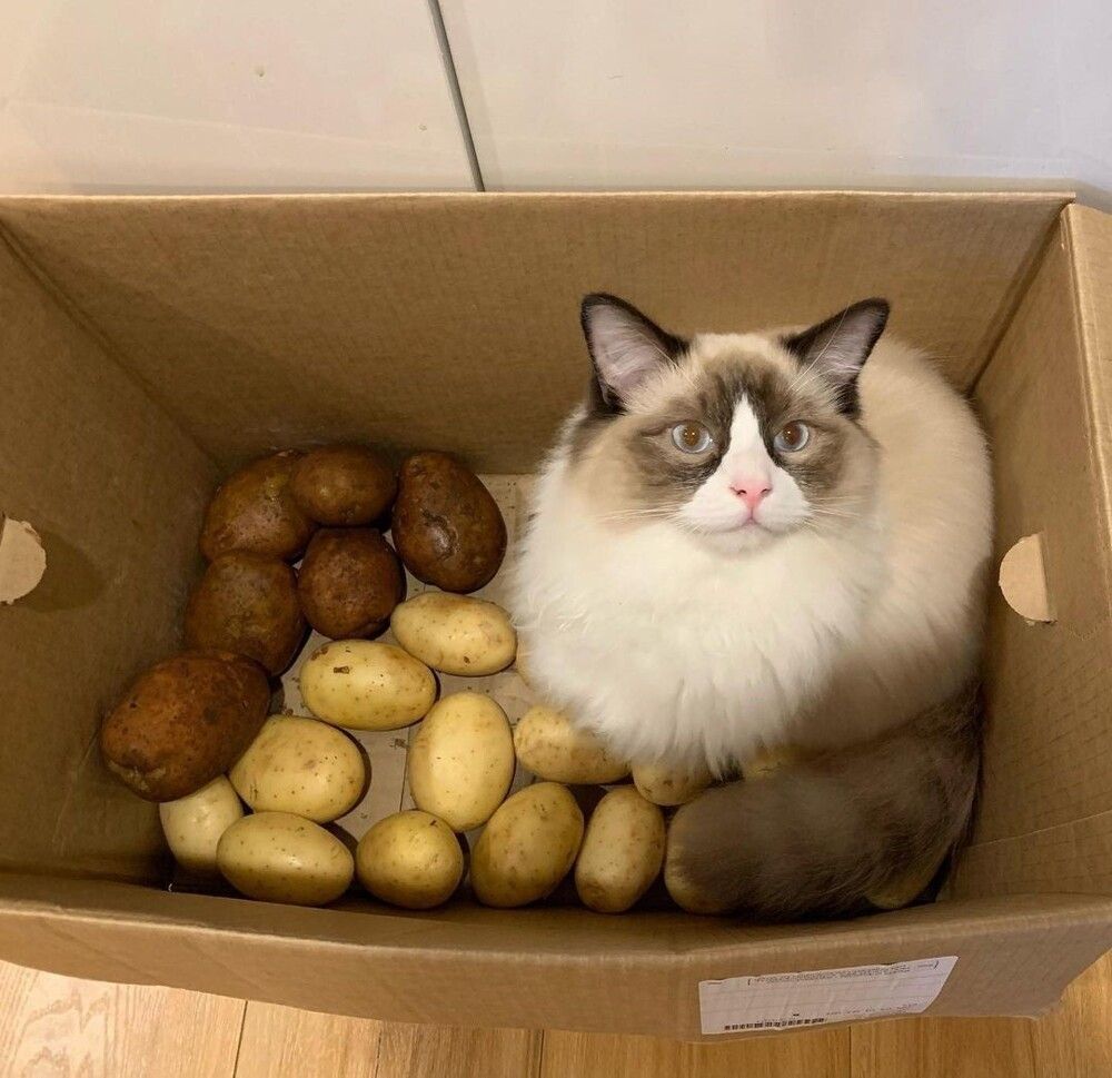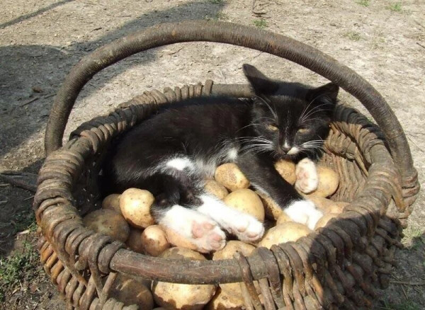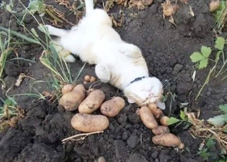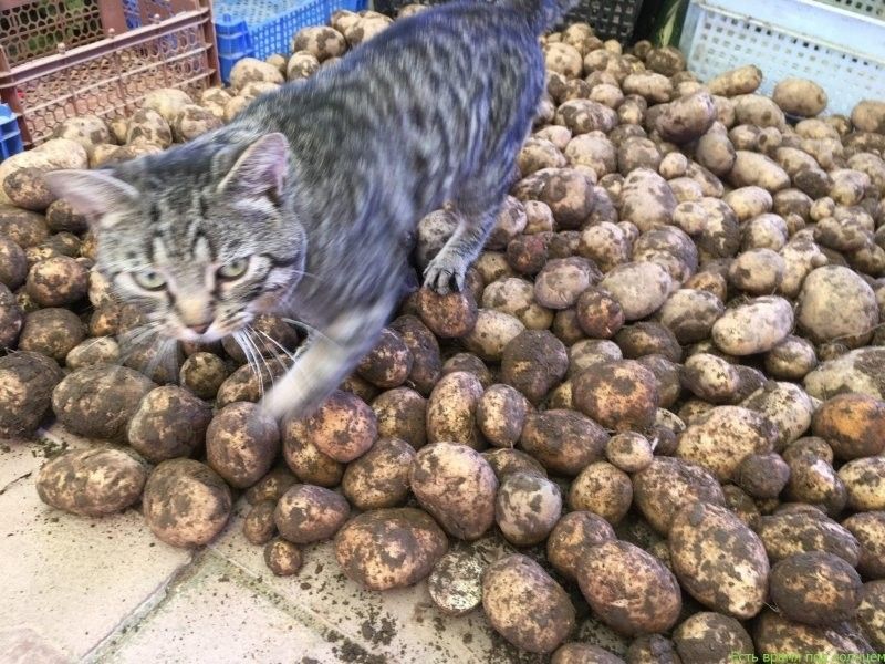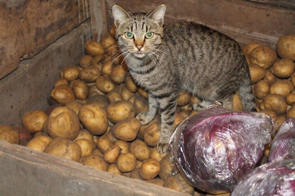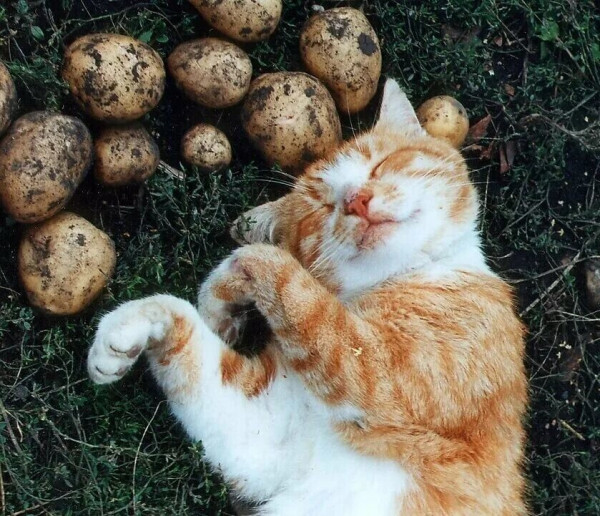 Кошка и картошка: 22 милых снимка, демонстрирующих единство приятного и полезного