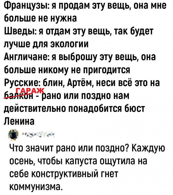 Мы об этом уже писали, почитать можно здесь. Но это слишком благодатная тема, чтобы так просто с ней распрощаться. Ведь все из нас, более молодого поколения, хоть раз да задавались вопросом, зачем же все это барахло хранить и так ревностно его защищать.Давайте разберемся логически, почему взрослые мужчины часто превращают свои гаражи в склады ненужных вещей. Во-первых, это вопрос практичности. Многие из них выросли в времена дефицита, когда каждая деталь могла пригодиться для ремонта. Они видят в старом хламе потенциал для будущих проектов, будь то сломанная дрель или обрезки провода. Во-вторых, здесь играет роль психология. Собирание вещей дает чувство контроля и безопасности, как будто запас на черный день защищает от непредвиденных ситуаций. Ностальгия тоже важна: каждая банка с гвоздями или старая шина напоминает о прошлом, о самостоятельности и мастерстве. Кроме того, для мужчин гараж часто становится личным пространством, где они отдыхают от быта, а хлам служит оправданием для времяпрепровождения там. В итоге это не просто привычка, а способ сохранить связь с традициями и самоидентификацией.Особо хозяйственные москвичи пошли дальше и требуют признать гаражи культурным наследием ЮНЕСКО. Жители района Свиблово направили официальное обращение, чтобы защитить свои сооружения от сноса, подчеркнув их роль как личных пространств для снятия стресса и культурной ценности.