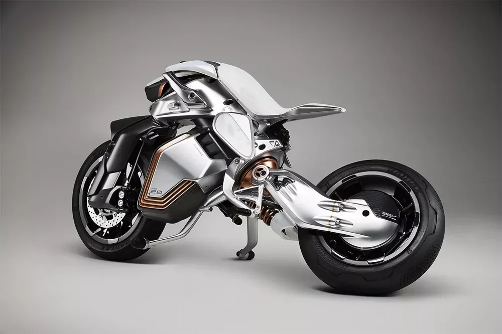 AI здесь на уровне: распознаёт твоё лицо, реагирует на жесты и голосовые команды. Махнул рукой - и он едет за тобой. Нет классического руля - вместо него интегрированные рукоятки в корпусе, чтобы всё было как в фантастике. Задний маятник (pivot swingarm) крутится, делая байк манёвренным как дрон. А структура LEAF делает движения органичными, будто мотоцикл живой и понимает тебя без слов.