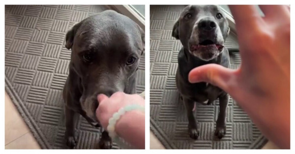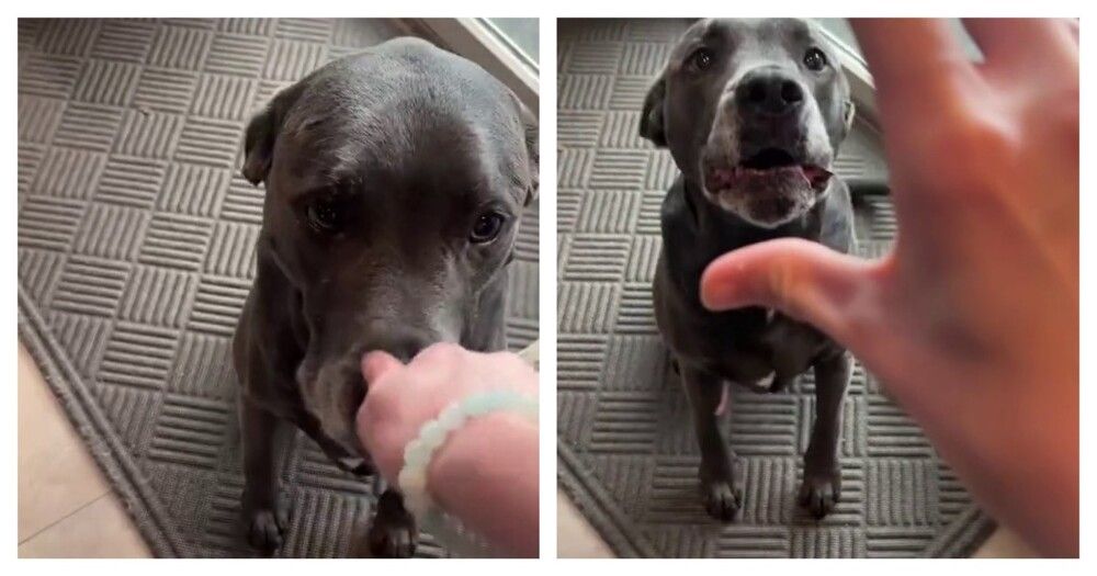 В сети набирает популярность ролик с недовольным псом. Питомец злится, когда хозяйка "ворует" у него нос.
