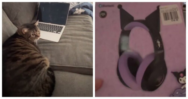 Домашний кот начинает злиться, когда девушка хозяина надевает наушники, и сразу же успокаивается, как только она их снимает.