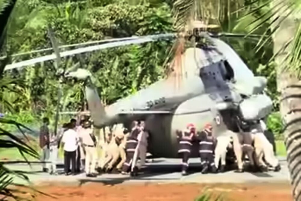 Вертолет, перевозивший президента Индии Драупади Мурму, прилетел на стадион "Прамадам" в штате Керала. При посадке главу государства ждал неприятный сюрприз. Шасси вертолета увязли в свежем асфальте, уложенном незадолго до прибытия президента.