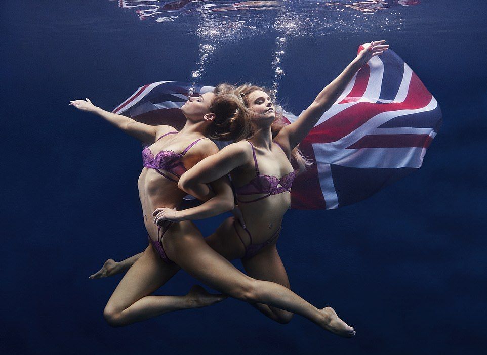 Синхронные пловчихи команды GB демонстрируют свои навыки в потрясающих образах, чтобы нанести ответный удар жестоким троллям, которые издеваются над ними за их "мускулистое" телосложение. 19-летняя Кейт Шортман и 20-летняя Изабель Торп из Бристоля будут представлять этот вид спорта на Олимпийских играх в Токио. В новой кампании для фирмы нижнего белья Bluebella спортсменки принимают потрясающие позы под водой, демонстрируя нижнее белье.