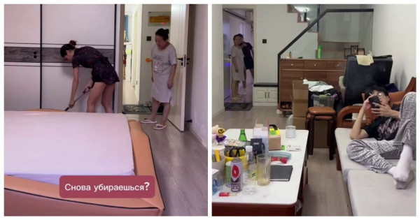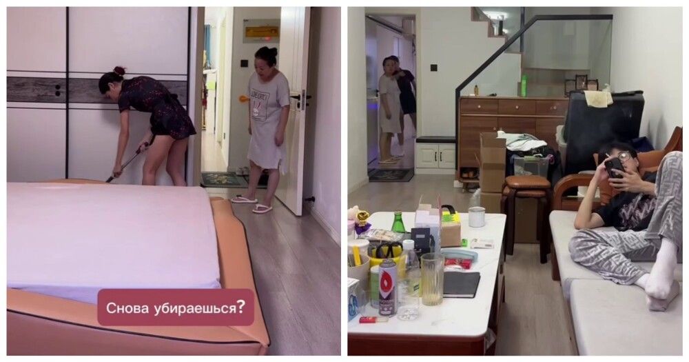 Девушка, состоящая в межнациональном браке, сняла по просьбе подписчика розыгрыш мамы мужа. Автор видео сказала мужу-китайцу лежать на диване, пока она убирается в доме.